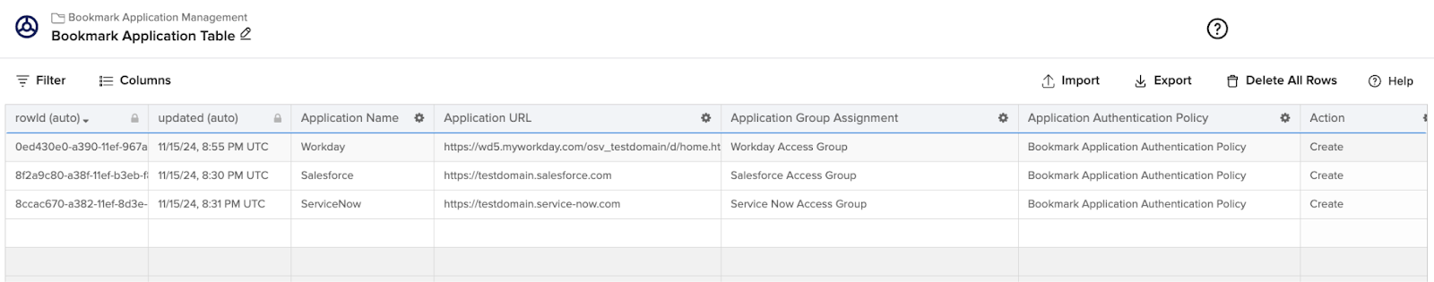 Action: Displays Create to indicate that bookmarks apps are created.