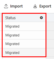 Select the EntraID Application Export Table. If the migration was successful, the apps show a status of Migrated.