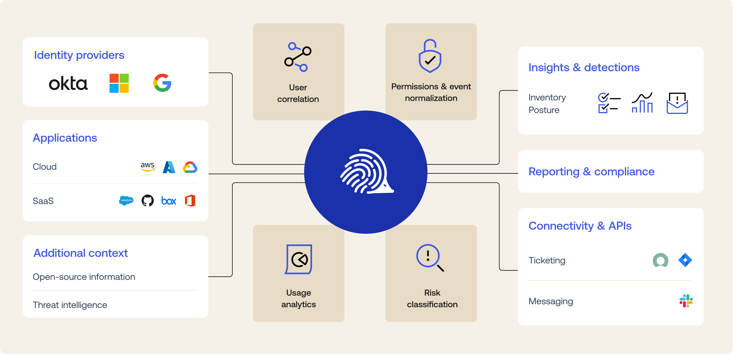 Identity Security Posture Management uses an agentless process to integrate quickly and seamlessly with your identity providers, SaaS applications and Cloud infrastructure to provide continuous visibility into identities, permissions, and actions.