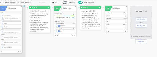 Once the response is ready, return it immediately. You can use the API Connector Close card to return a value while the rest of the flow continues processing.