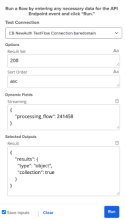 When you click Run in the dialog, the flow executes using that test data. The execution history shows the data as it passes through each card in the flow.