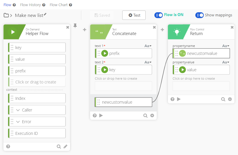 Inputs Dynamically generated inputs defined by the helper flow. Use the dropdown to specify which input receives the key and which receives the value. Various TRUE