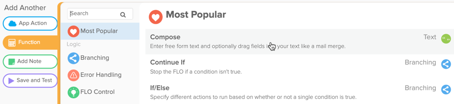 - In the Add Another menu, select Function.