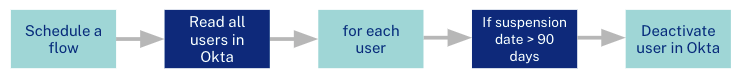 Solution: Either on a lifecycle event hook or a polling schedule, read Okta user information to determine whether specific actions based on time or another user context need to take place.